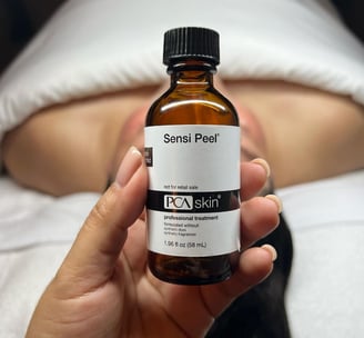 The Sensi Peel is a gentle chemical peel designed for all skin types, including sensitive and darker skin. It improves surface texture, brightens the skin, and promotes an even tone. This treatment is suitable for sensitive skin, acne, pigmentation, rosacea, and eczema-prone skin, with up to 10 days of downtime.